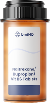 Our compounded Naltrexone/Bupropion/Vitamin B6 is created in a licensed 503A pharmacy under strict quality control standards to ensure safety and effectiveness. It is formulated specifically for bmiMD patients based on a thorough assessment by our licensed providers, ensuring that each prescription is tailored to individual health needs.